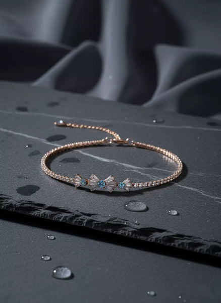 Set in a rose gold finish, this bracelet captures the essence of sophistication — perfect for elevating your everyday look or complementing your evening ensemble. The adjustable chain ensures a comfortable and secure fit, making it suitable for all wrist sizes.