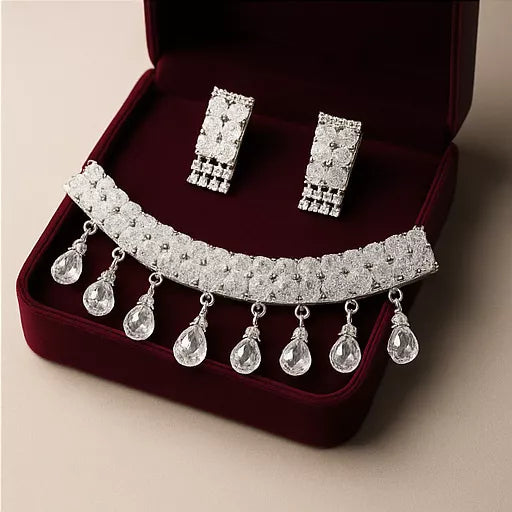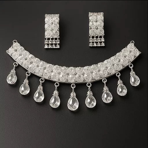 • 💎 Type: Artificial Silver Crystal Bead Necklace Set