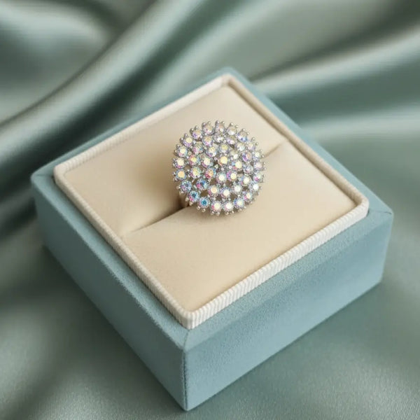 Add instant glamour to your look with this Trendy Cluster Fashion Ring, designed to be the perfect blend of chic style and bold elegance.