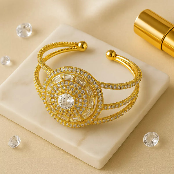 Elevate your style with this Radiant Halo Gold-Plated Bracelet, a masterpiece of modern elegance and timeless charm. Designed for those who appreciate sophistication, this artificial jewelry piece combines luxury aesthetics with everyday wearability.
