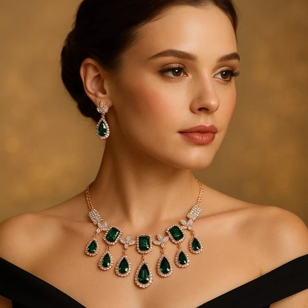 Add a touch of royal elegance to your look with this Emerald Queen Necklace Set, a masterpiece of timeless beauty and modern glamour.